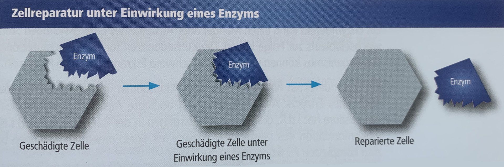 Störungen in der Zelle werden durch Enzyme gezielt repariert, Heilung von entzündlichen Prozessen angeregt.